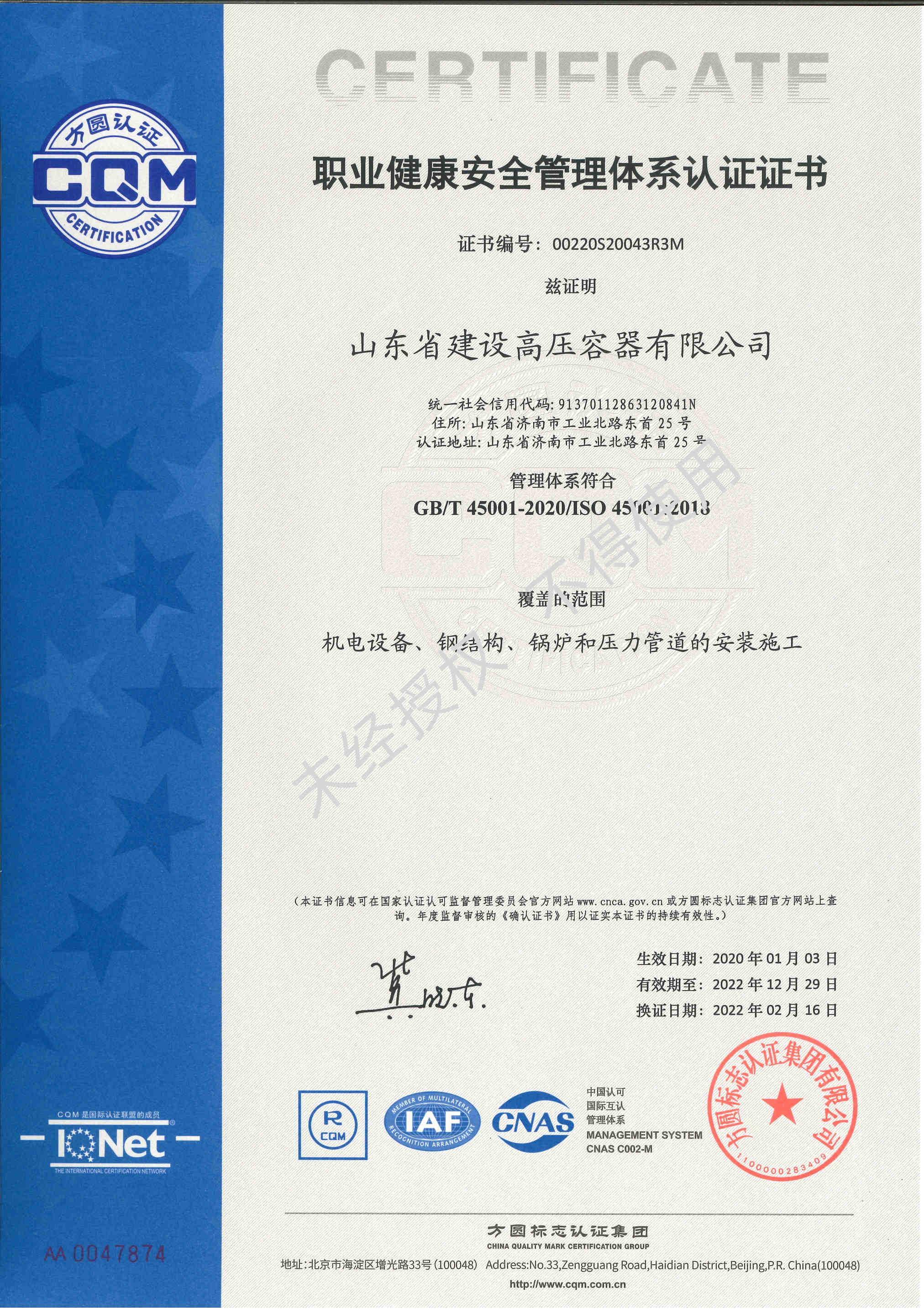 职业健康安全管理体系认证…