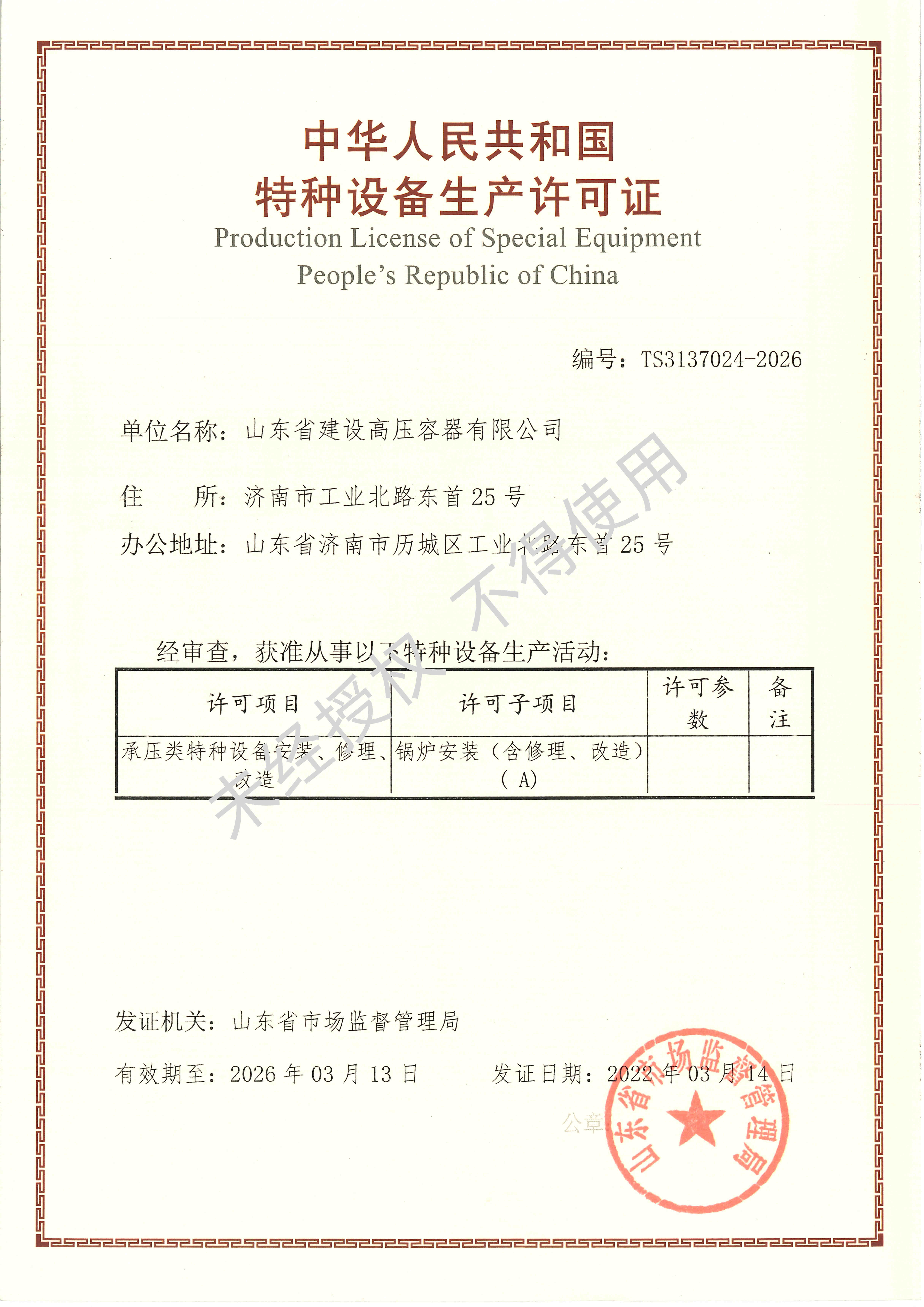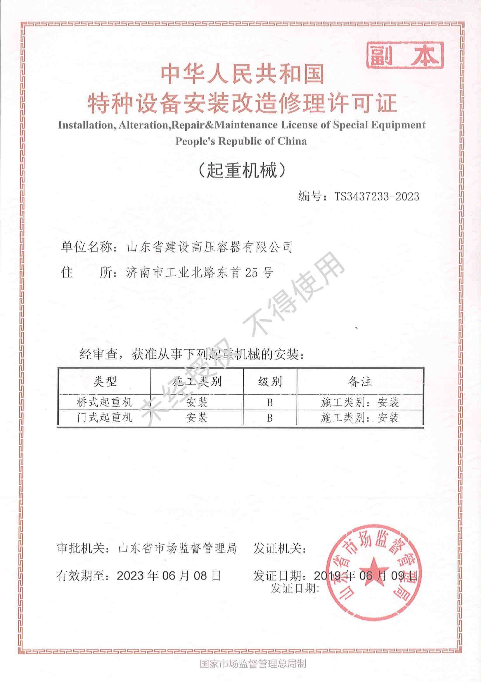 起重机械安装许可证